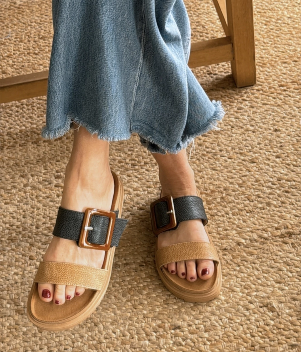 CHANCLE 100% CUERO COMBINADO EN SUELA Y NEGRO.