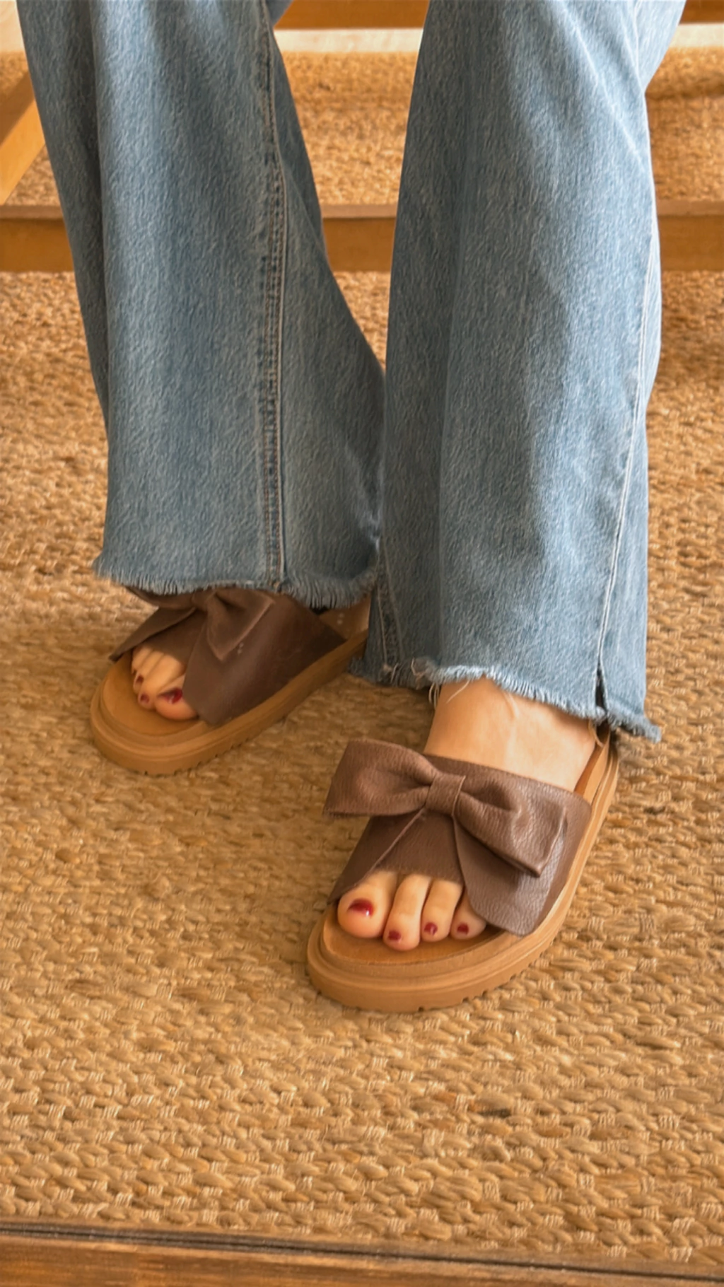 CHANCLE CON FAJA DE CUERO Y MOÑO