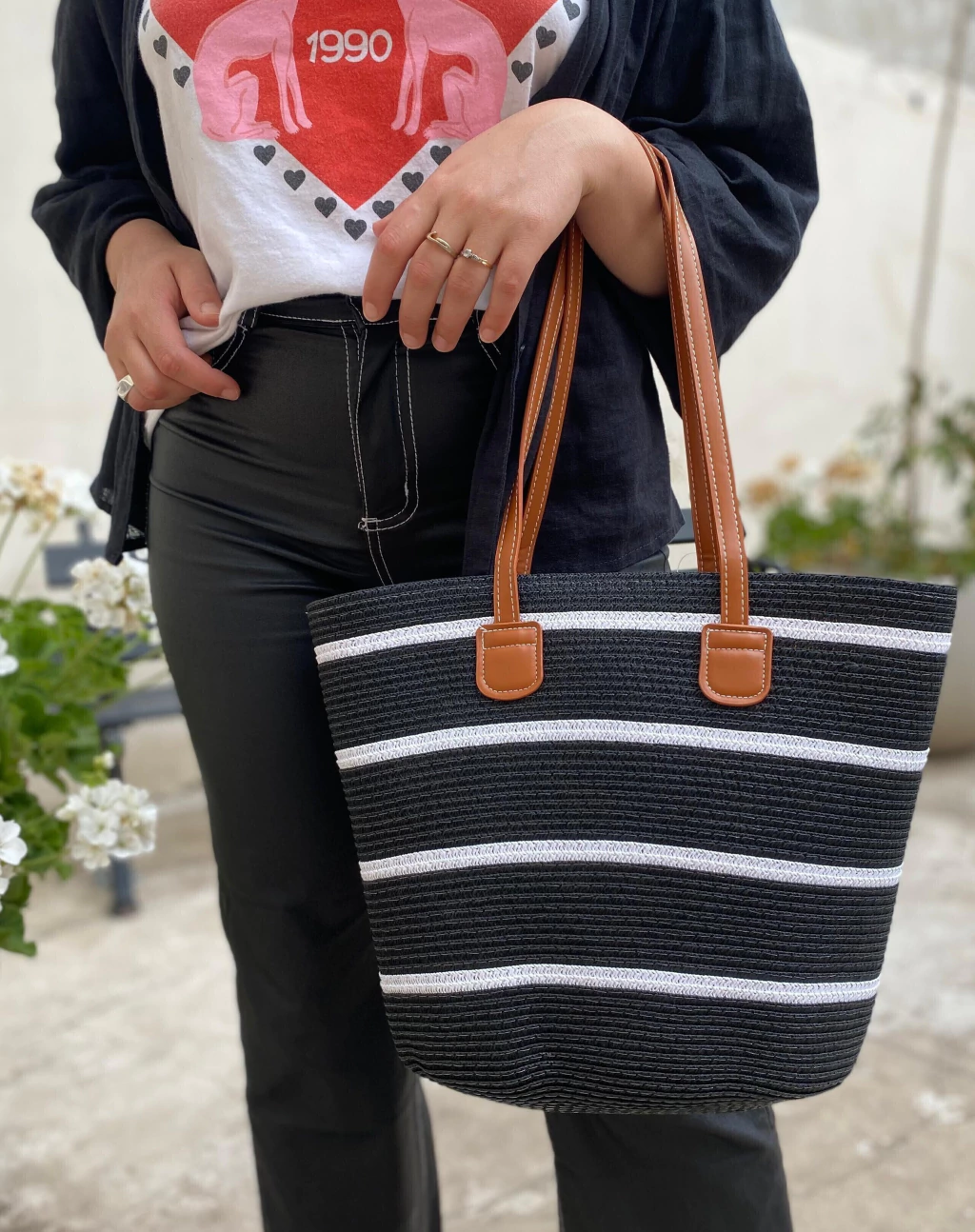 BOLSO ALLEGRA NEGRO RAYAS BLANCAS