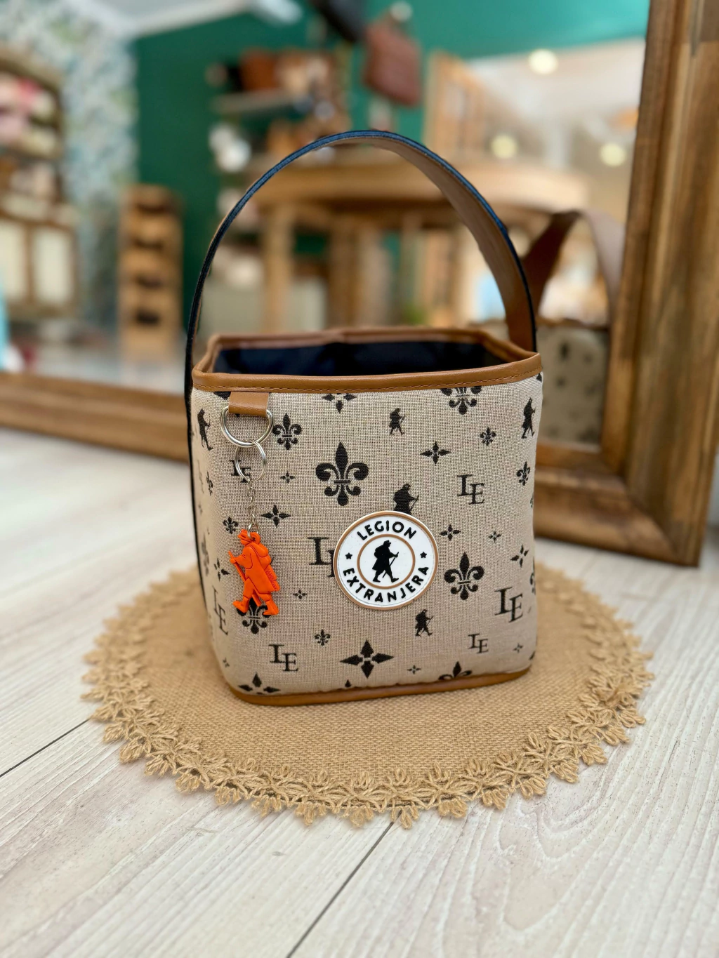 Matera rígida cuadrada de dos compartimentos con interior resistente al agua. Cuenta con una manija rígida de simil cuero para poder cargarla comodamente. Se encuentra armada con una tela tejida jacquard desarrollada especialmente por Legión Extranjera con nuestra icónica estampa Epic. Es ideal para el uso diario, llevar tu kit de mate donde quieras. Recomendamos una limpieza por profesionales, o simplemente con un paño húmedo.