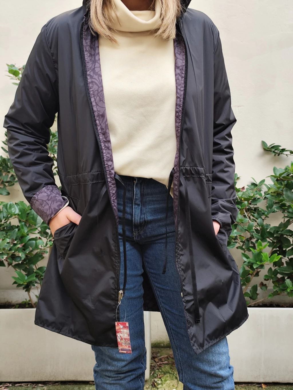 Piloto-parka reversible , realizado en Pongee sublimado en el exterior e interior total black, para que puedas utilizarlo de ambas formas, aprovechando su versatilidad al ser reversible. Capucha completamente forrada. Cuenta con bolsillos exteriores y cintura ajustable con cordón. Detalles en plastisol. Para saber cuál es tu talle mirá las medidas en la tabla!